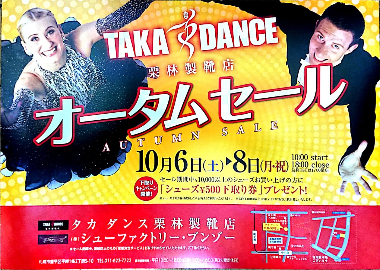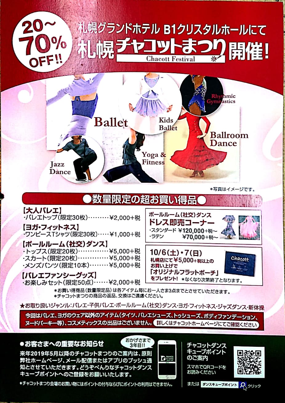こんどの土日、ダンス用品のセールがあるそうで案内が来てました。