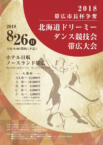 26日日曜日は帯広で「帯広市長杯争奪 北海道ドリーミーダンス競技会帯広大会」が行われます。