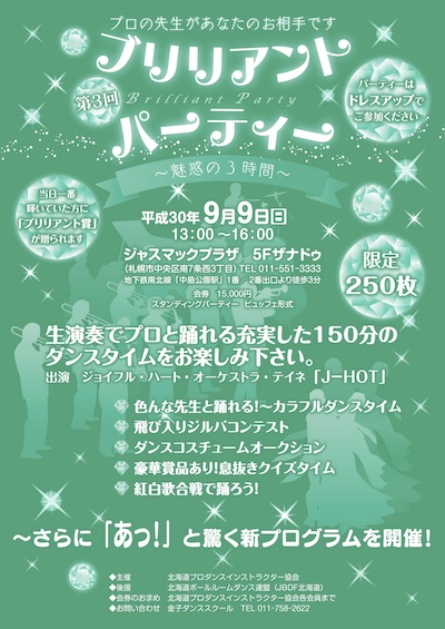 9月9日(日)はジャスマックプラザホテルで「第3回ブリリアントパーティー」が開催されます。