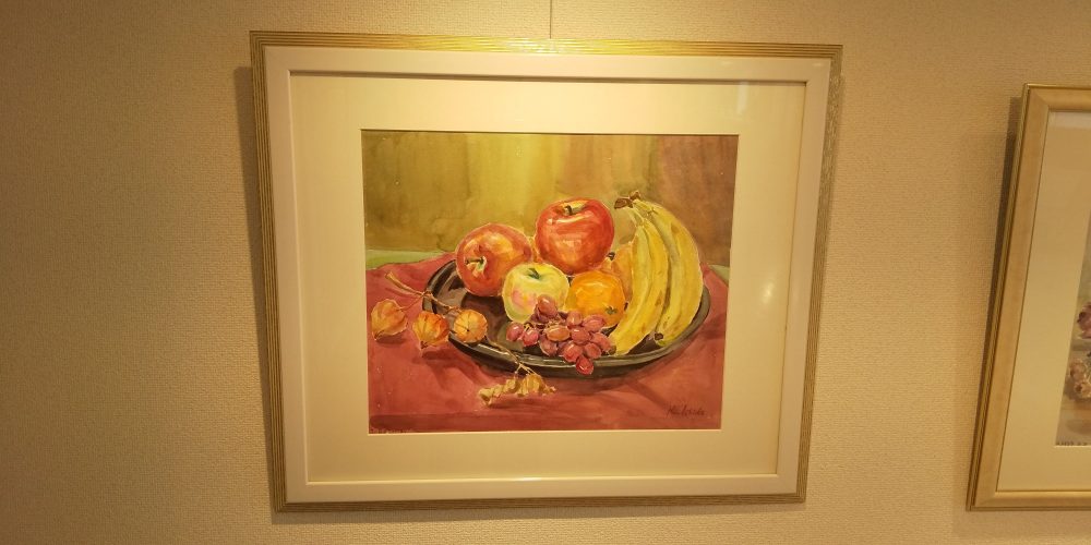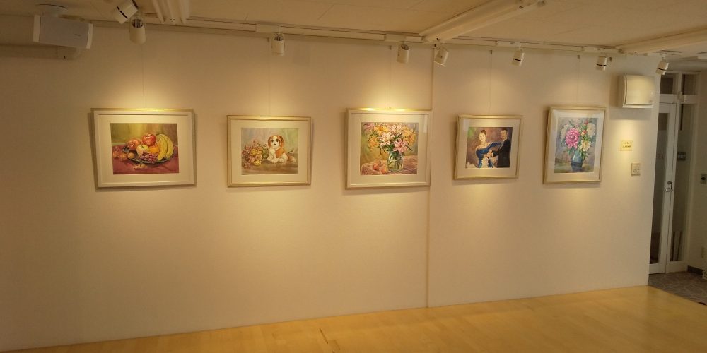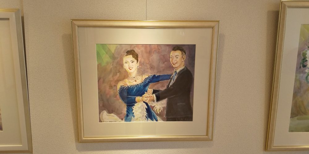 ダンスの生徒さんで水彩画をされている石田さんが、今回の「コロナでダメージを受けた先生や生徒さんに元気になってもらうようにメッセージをこめて」と作品の展示を申し込んでくれました。