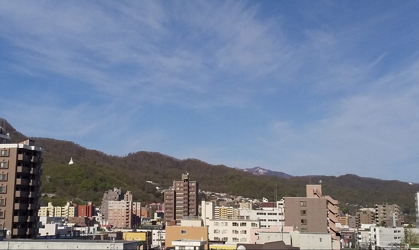 近くの桜は散ってしまったのですが、山の新緑は日に日に色づいてきています。